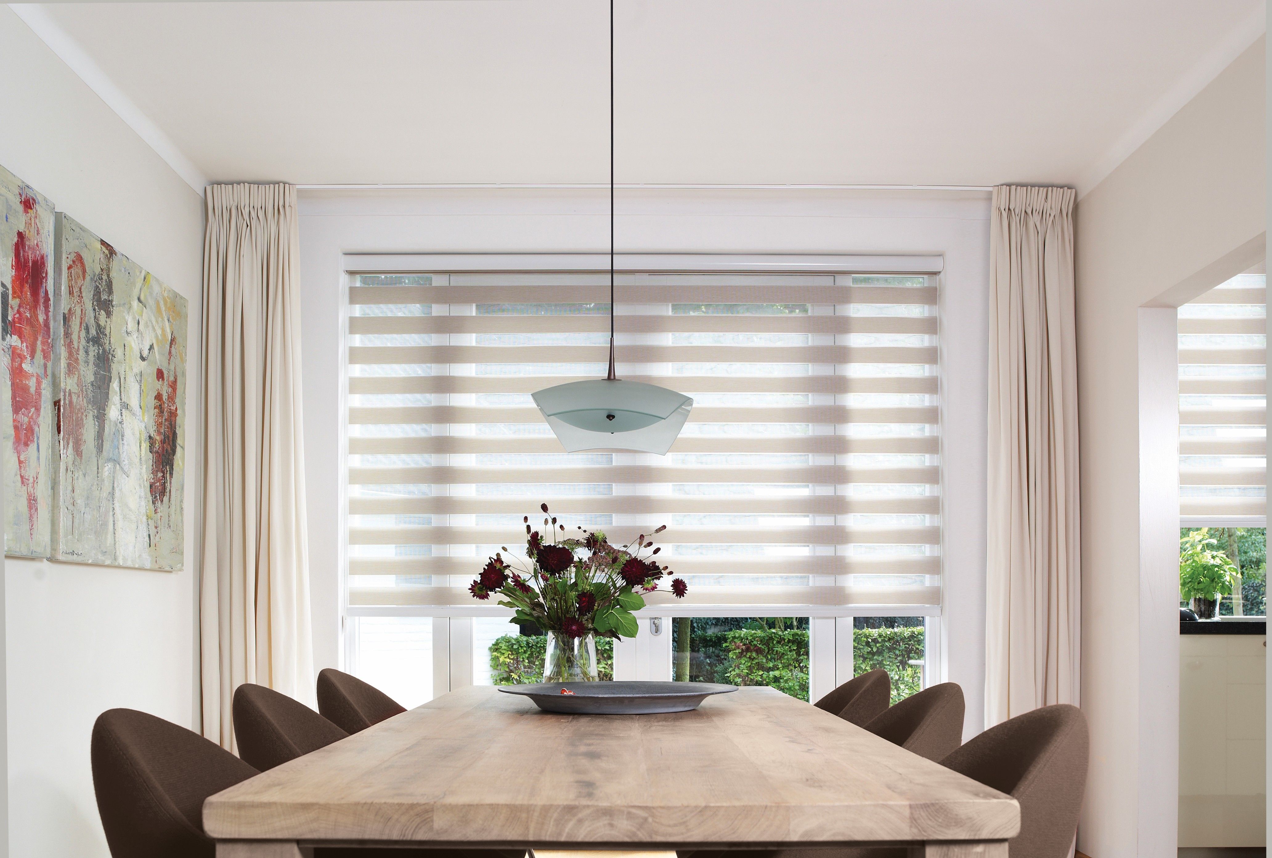 Duo rolgordijnen zijn ideaal als je wilt genieten van veel daglicht maar ook je privacy belangrijk vindt. Door de afwisseling van transparante en dichte stroken kun je het licht heel precies regelen en blijft het uitzicht behouden wanneer jij dat wilt.